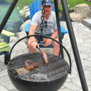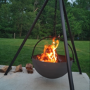 This is the safest, most efficient way to suspend a pot over a fire. Please note – we do not recommend ever putting a large pot on the cooking grill of your Cauldron. Suspend it from above. That way it can’t spill.